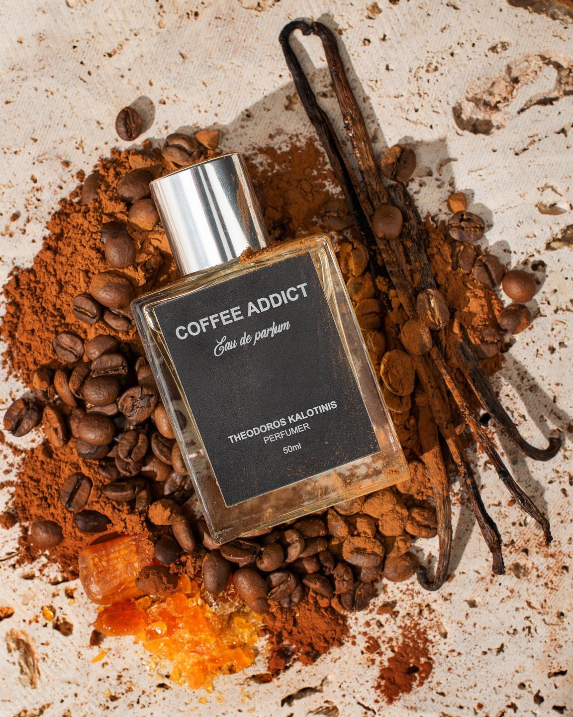 När du med ”Il Giornale” under armen kliver över tröskeln till den milanesiska kaffebaren, som har lysrör i taket och enkelt kakelgolv, slår doften av mörk espresso emot dig. Eller så har du bara sniffat på kaffedofternas kaffedoft, Theodoros Kalotinis Coffee Addict EdP ! Den är så koncentrerat java-doftande att den nästan är berusande.
