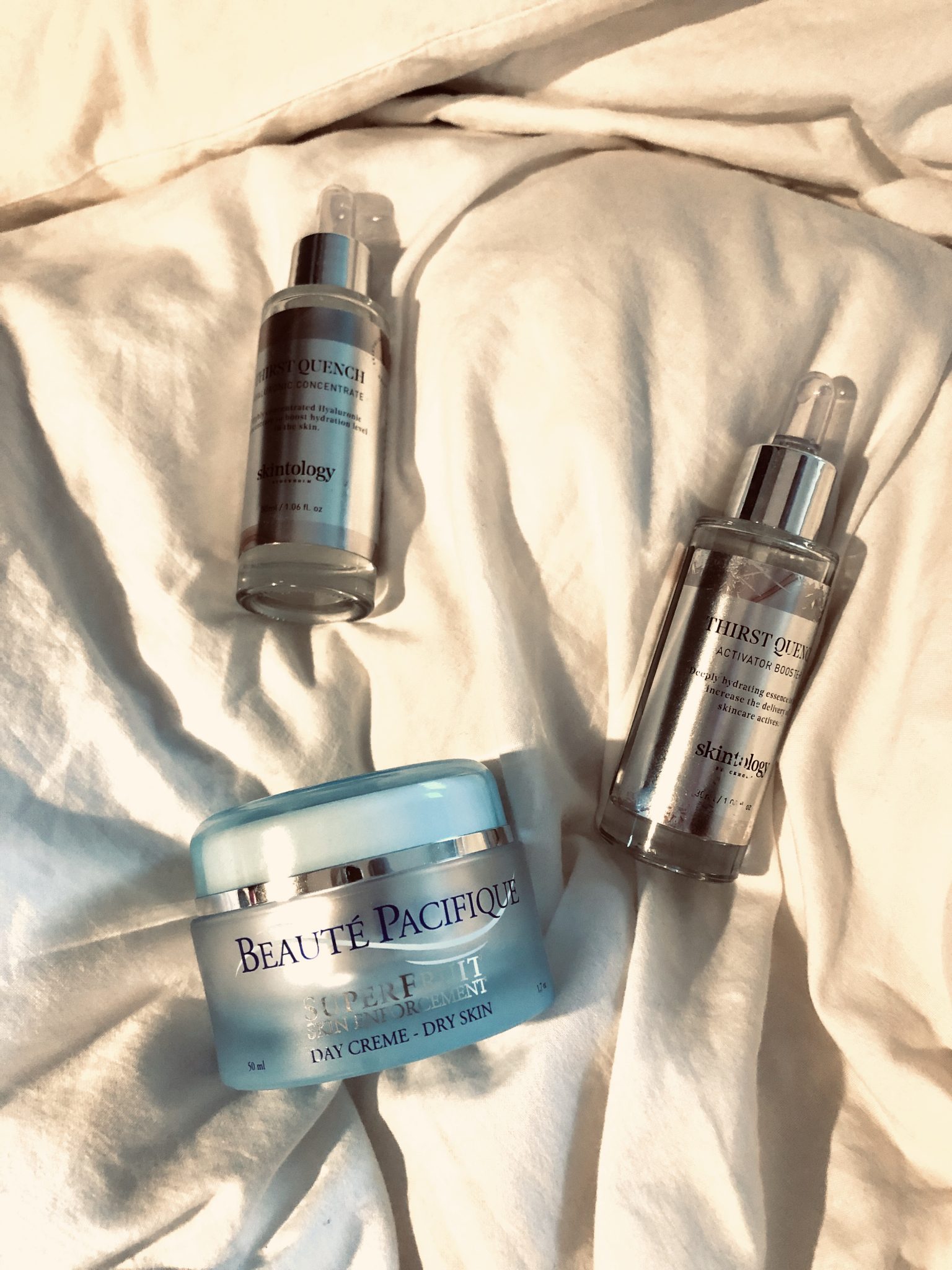 Som nattkräm kör jag en dagkräm från Beaute Pacifique. Den innehåller både peptider, squalane och arganolja. Massor med fukt och en del fett. Allt för att återfukta och reparera huden.