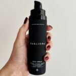 Etudes sheetmask är tillverkad i fiberväv och indränkt i mycket essence. En del blir kvar i påsen, så det häller jag ut i handen och smörjer in på halsen. Essencen är doftlös och tunn, nästan vattnig, i konsistensen.
