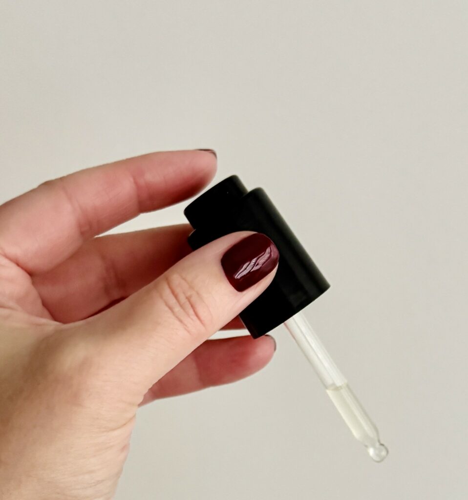 Droppa serumet i handflatan och se till att pipetten inte rör huden. Sedan klappar du in serumet i huden tills det är helt absorberat. Avsluta med en dagkräm, nattkräm eller mask, beroende på när du använder serumet. Jag använder det dagtid.
