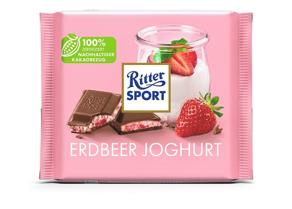 Yogurette Erdbeere eller Ritter Sport Erdbeer Joghurt. Rekommenderas till dig som inte gillar fyllig chokladsmak!