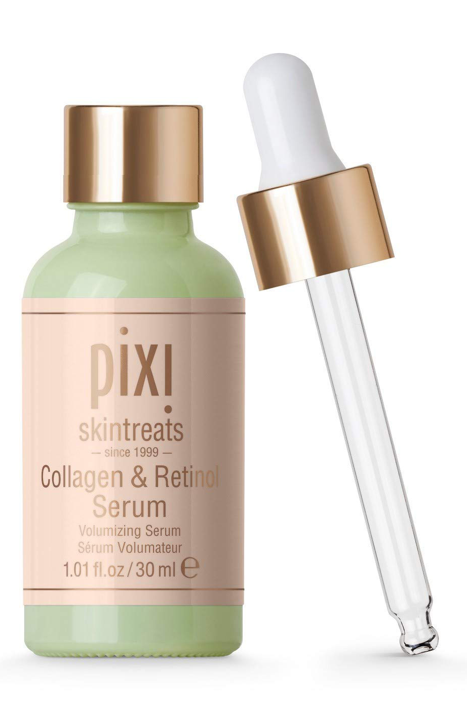 Pixi Collagen & Retinol Serum beskrivs av företaget själva som ett högteknologiskt serum med en unik formula som innehåller kollagen, retinol och vitaminer, som tillsammans ska stärka och fylla ut huden samt ge den ny spänst. Det hurrar vi såklart för.