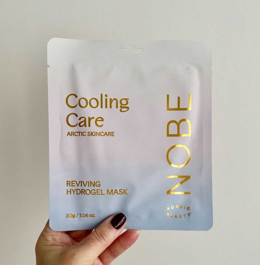 Efter exfolieringen var det dags för mask. Jag ville ha en svalkande fuktmask och valde därför Nobe Cooling Care Reviving Hydrogel Mask. Just masken är en ny bekantskap för mig, men jag är väl förtrogen med Nobes eyepatches i samma serie. De är toppen för svullna ögon.
